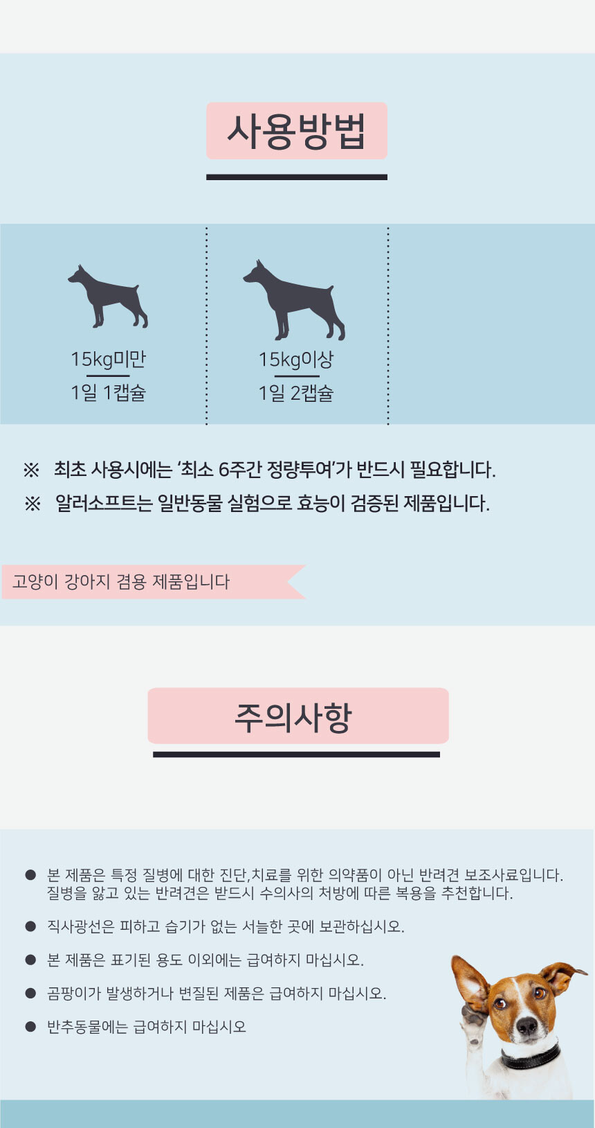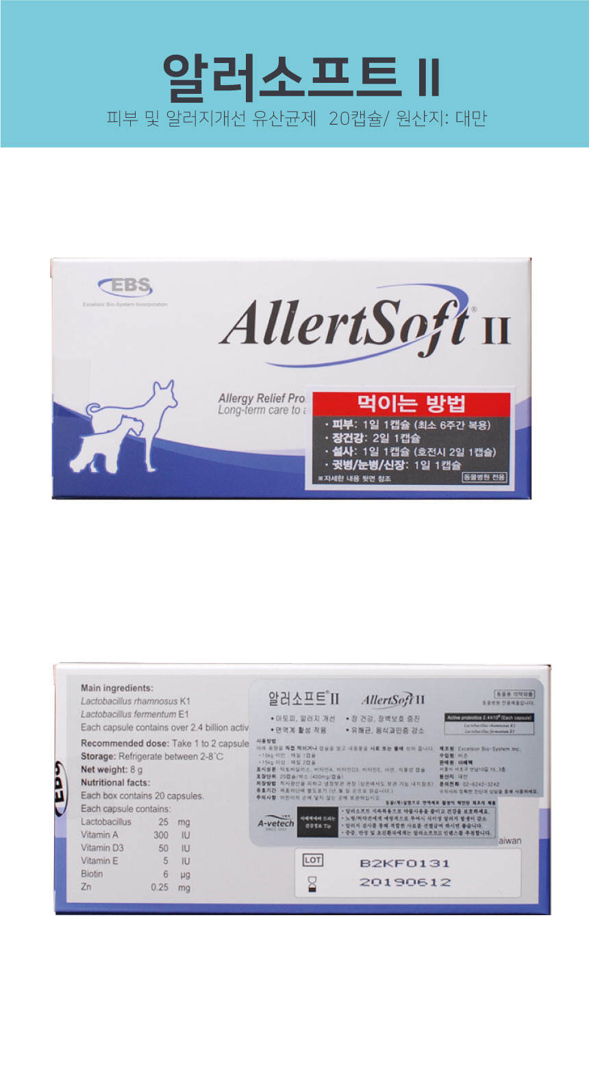 알러소프트2 20캡슐 강아지 고양이 알러지 면역 영양제 냉매포장