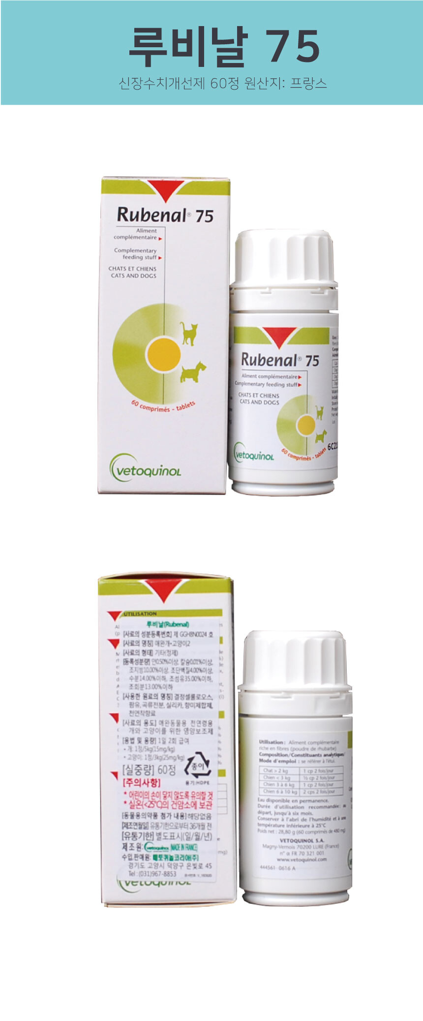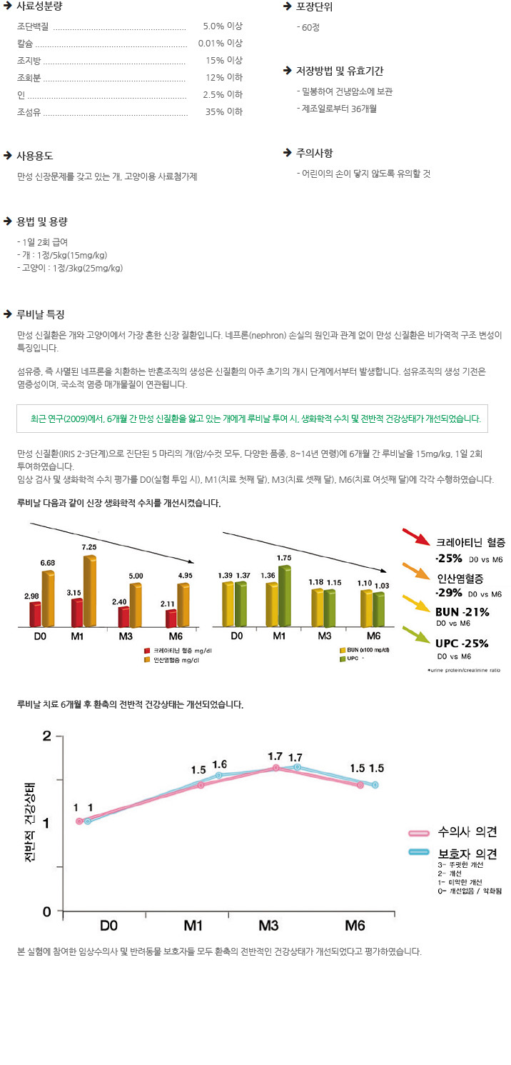 루비날 60정 신장 수치 개선제 건강 강아지 고양이 영양제