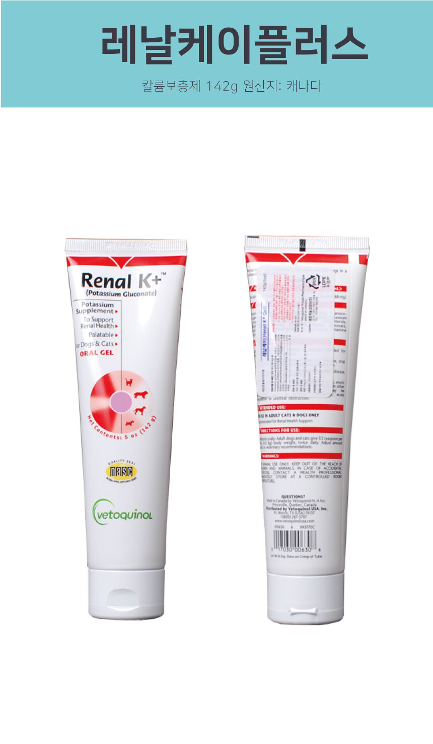 레날케이플러스 142g 베토퀴놀 칼륨 보충제 신장 건강 강아지 고양이 영양제
