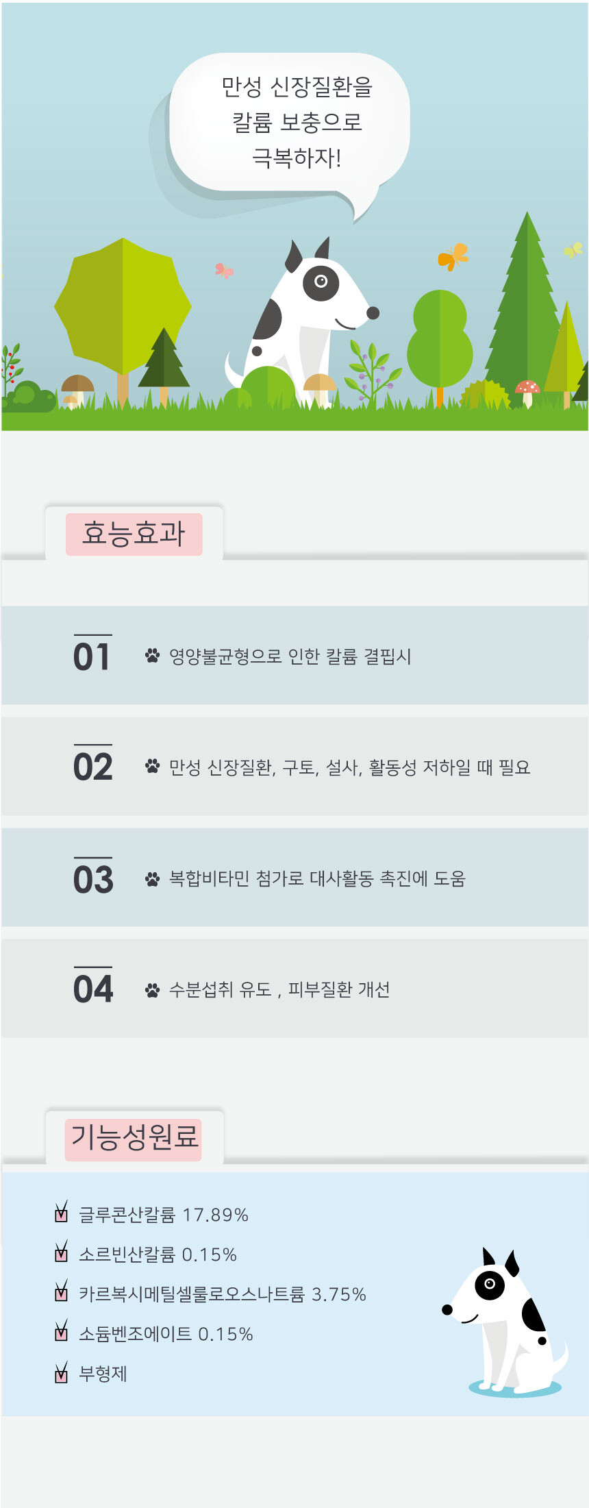 칼륨 보충제로서 수분 섭취를 유도해서 피부 질환 개선 효과와 칼륨을 보충시켜 줍니다.