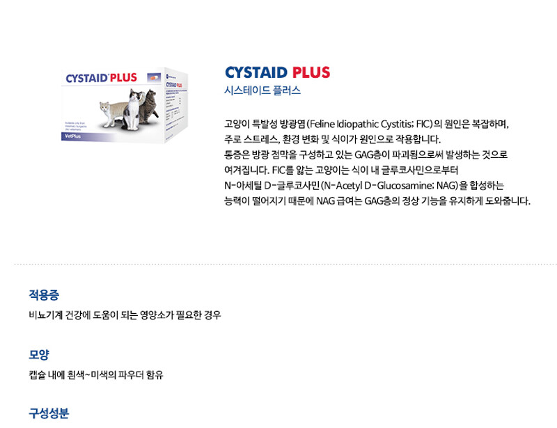 시스테이드 플러스 30캡슐 고양이 비뇨기계 건강