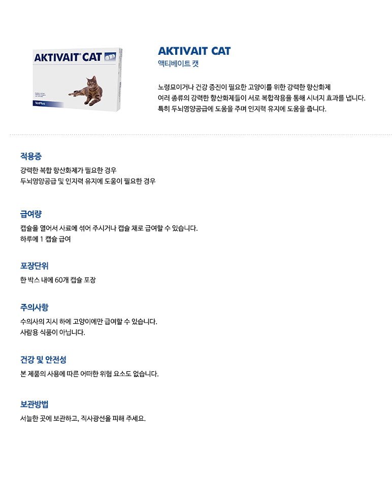 액티베이트 캣 고양이 인지력 개선 60캡슐