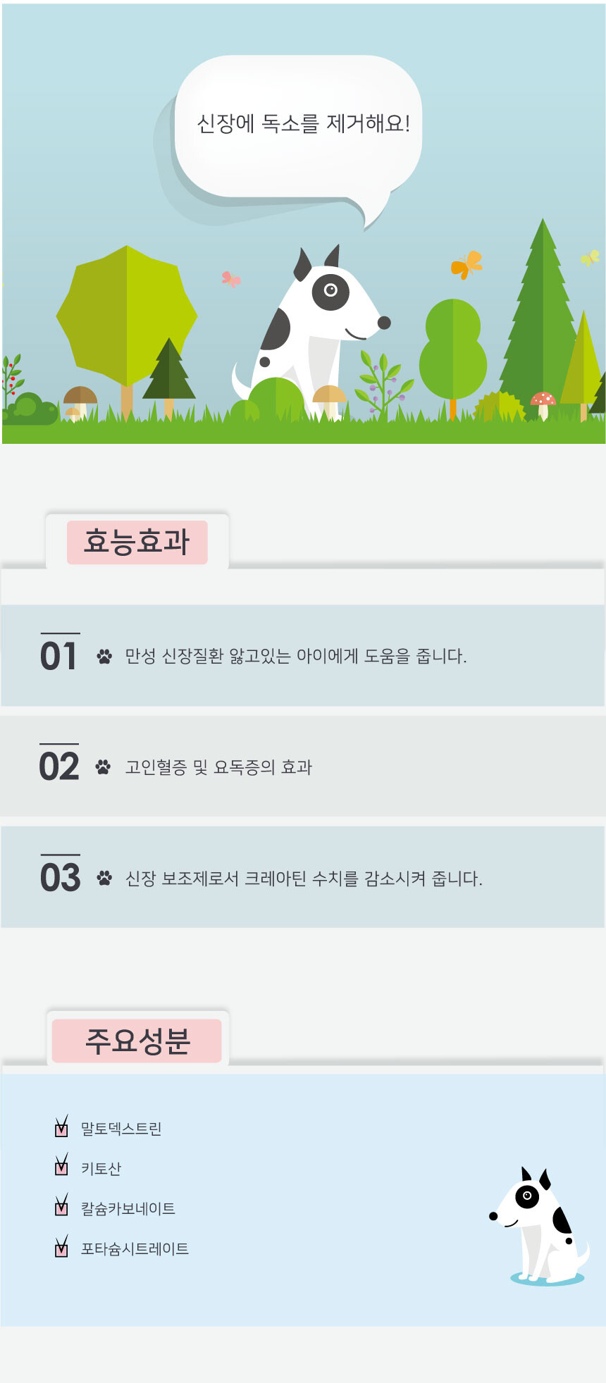 신장 건강 및 몸 안의 노폐물 및 독소를 배출 시켜줍니다.