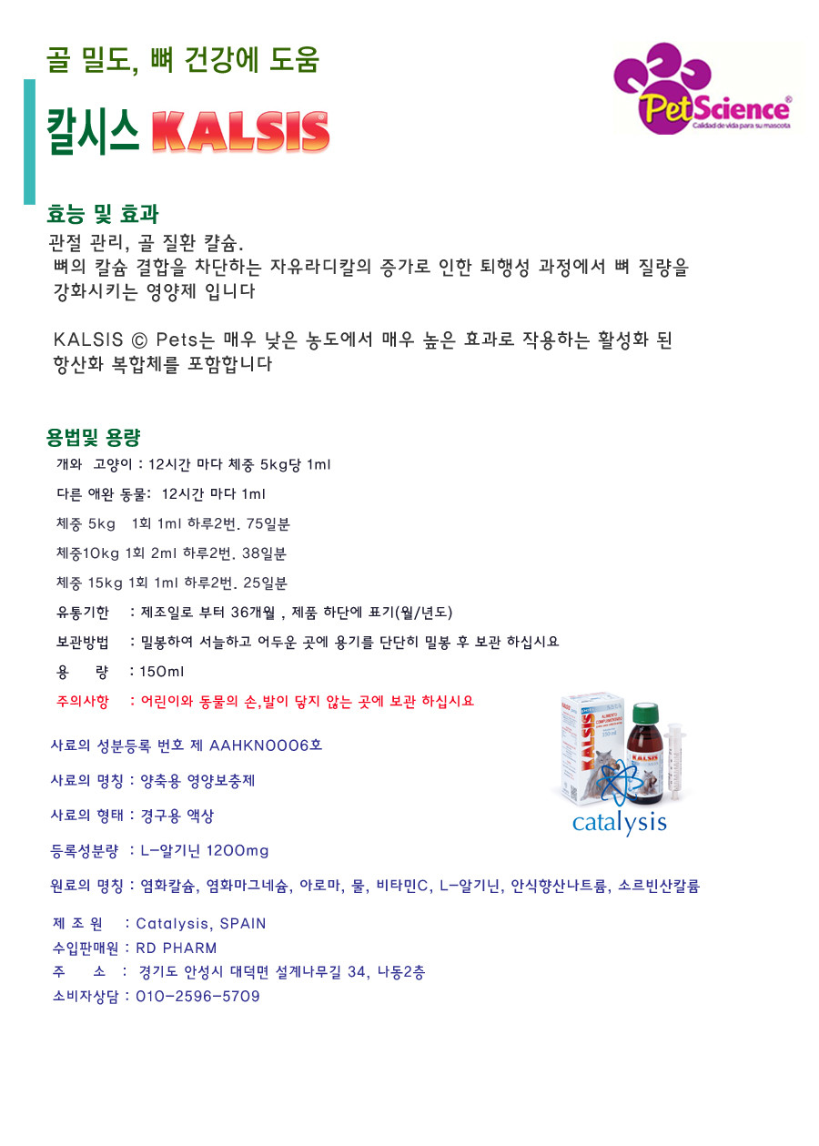 카탈리시스 칼시스 150ml 골절치유 칼슘 영양제 강아지 고양이