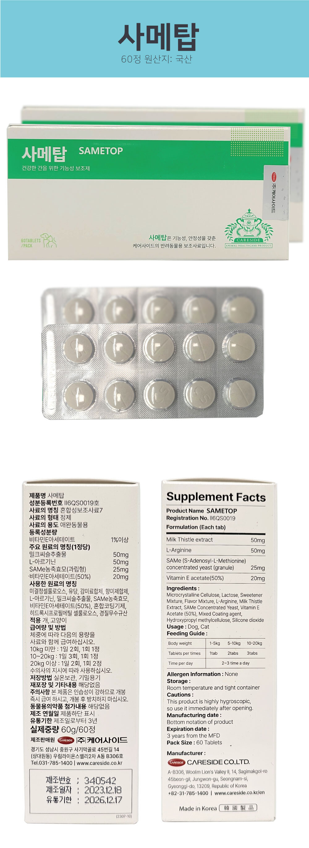 사메탑 60정 강아지 고양이 간 보조제 영양제