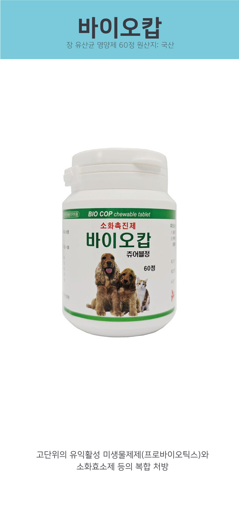바이오캅 유산균 장 영양제 60정 강아지 고양이