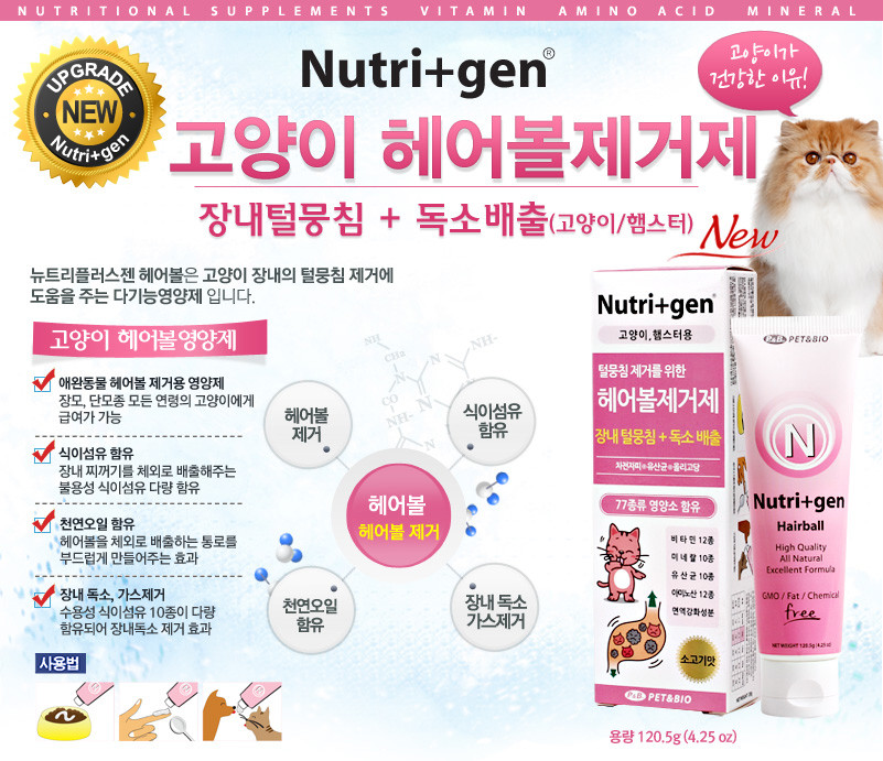 뉴트리플러스젠 헤어볼 제거제 120g 고양이 햄스터