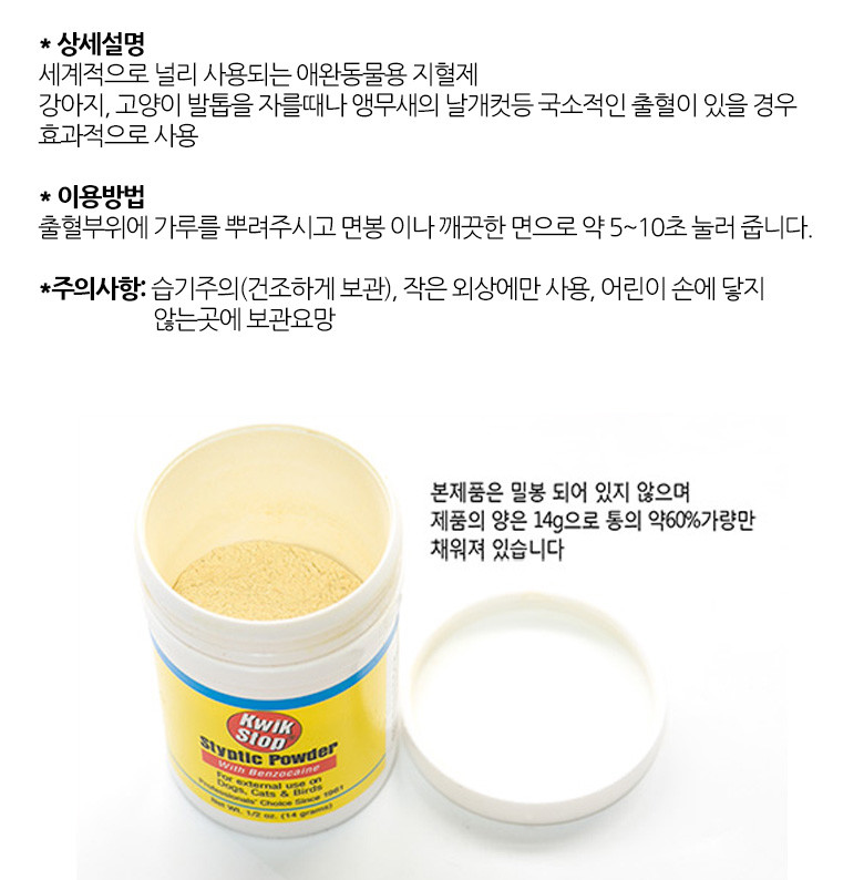 퀵스탑 지혈제 강아지 고양이 상처 소독 지혈 14g 분말