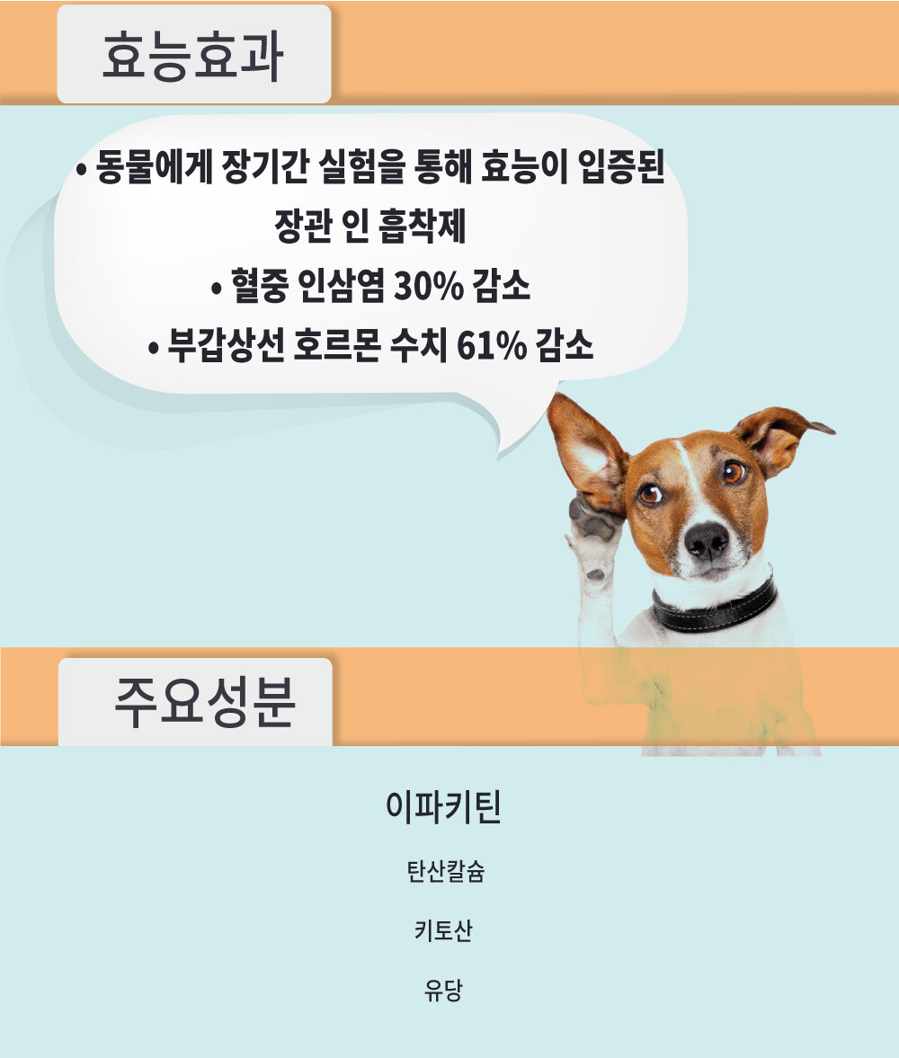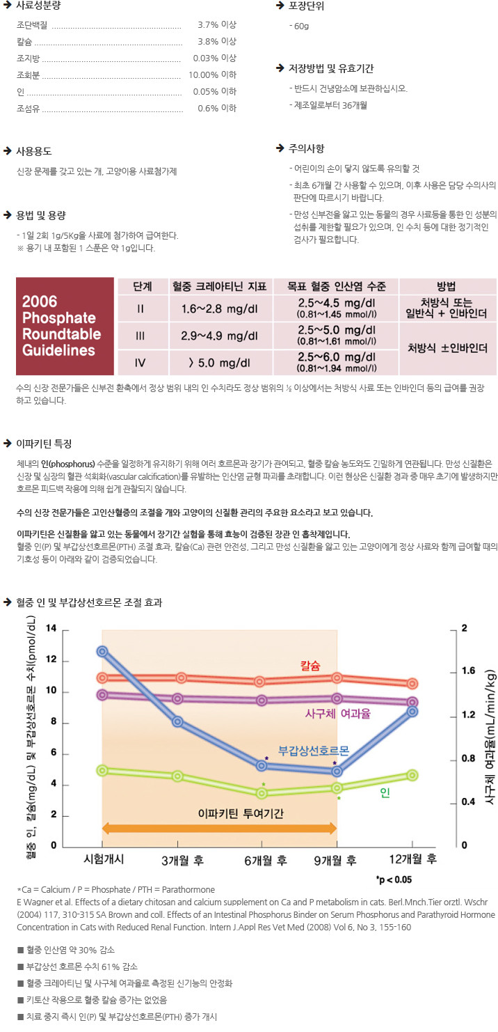 신장 건강을 유지 하고 혈중 인삼염 및 부갑상선호르몬 수치를 낮춰줍니다.