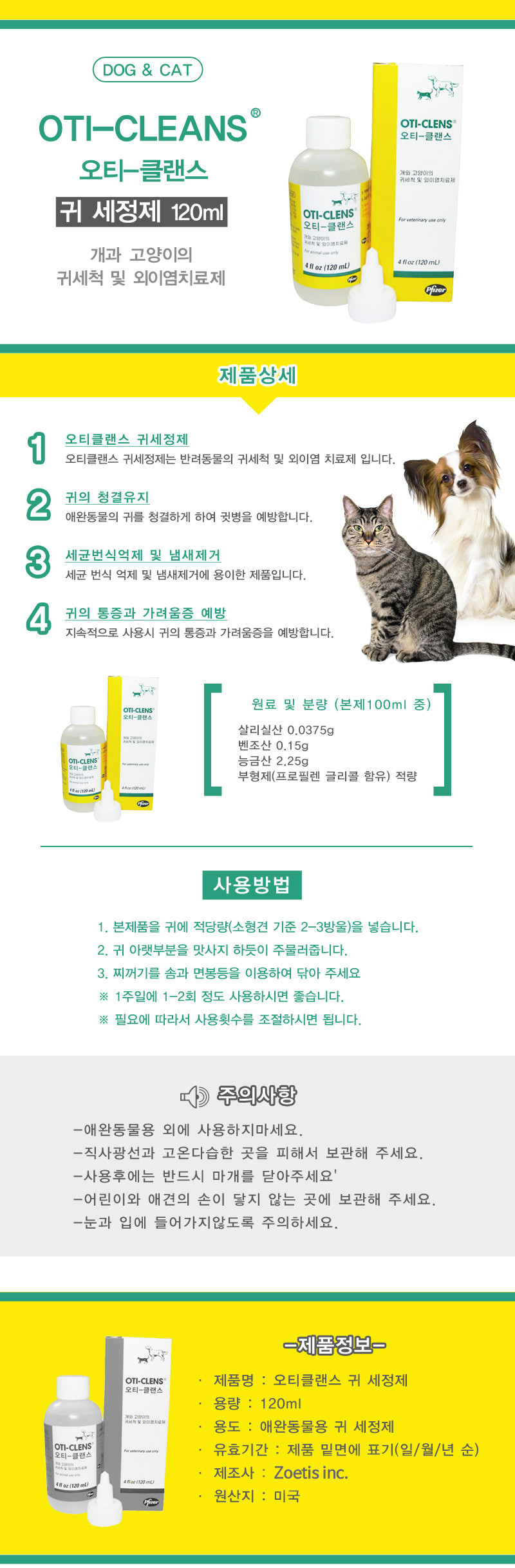 오티클렌스 귀세정제 이어클리너 120ml 강아지 고양이